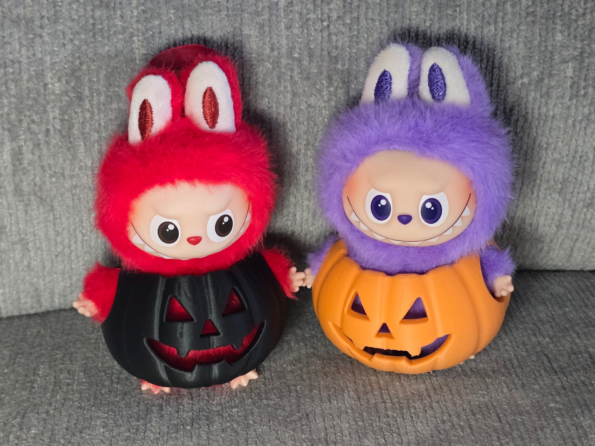 These 3D printed pumpkin costumes are sized just right for the smaller Pin For Love Labubu figures, turning them into the cutest little jack-o’-lanterns. Available in classic orange or spooky black, these pumpkins are a fun way to display your collection for the season.
